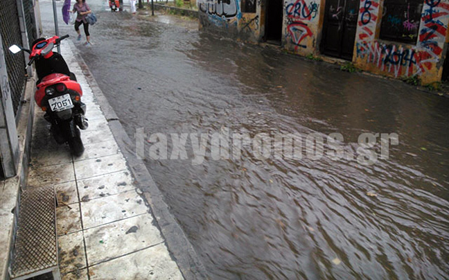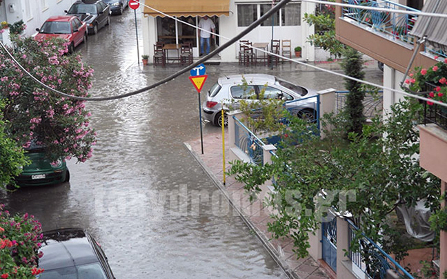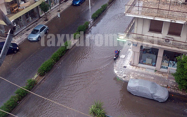 Από τη νεροποντή, δρόμοι μετατράπηκαν σε χείμαρρους, υπόγεια σπιτιών και καταστημάτων πλημμύρισαν, ενώ χαλάζι σε μέγεθος στραγαλιού, έπεσε στις συνοικίες της Νέας Δημητριάδας και στο Καραγάτς.