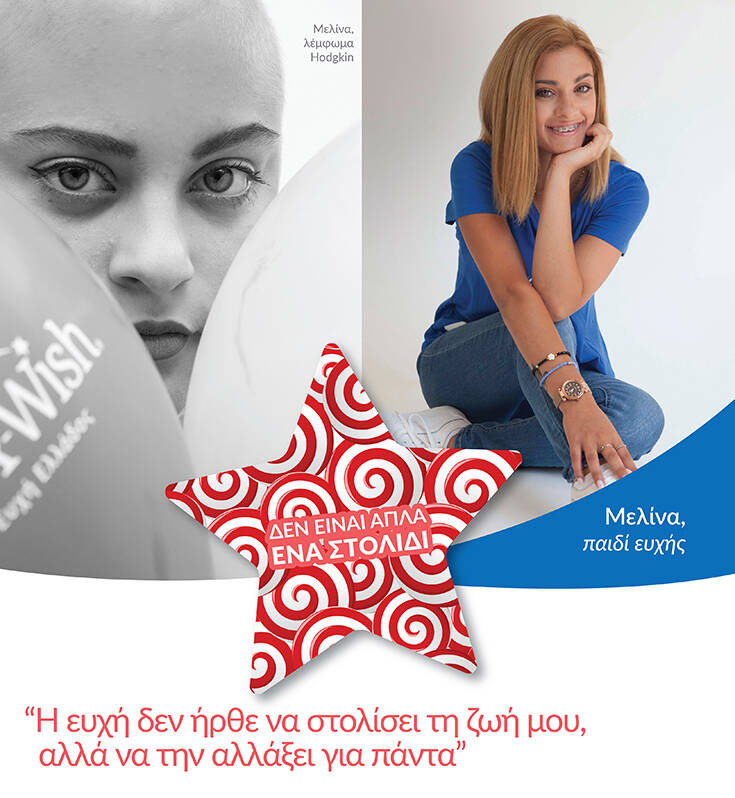 Το Make-A-Wish (Κάνε-Μια-Ευχή Ελλάδος) εκπληρώνει ευχές παιδιών 3 – 18 ετών που νοσούν από σοβαρές ασθένειες. Το προγράμματος Αστέρι της Ευχής ξεκίνησε πριν 22 χρόνια και εξακολουθεί να υφίσταται, κυρίως ως εκπαιδευτικό πρόγραμμα. Υλοποιείται σε όλα τα σχολεία της Ελλάδας με τη θετική γνωμοδότηση του Ινστιτούτου Εκπαιδευτικής Πολιτικής του Υπουργείου Παιδείας & Θρησκευμάτων και έχει δώσει δύναμη σε εκατοντάδες παιδιά με σοβαρές ασθένειες. 22 ολόκληρα χρόνια, μαθητές από όλα τα σχολεία της χώρας προσφέρουν το χαρτζιλίκι τους για την ίαση παιδικών ψυχών. Το Αστέρι φέτος μπορεί να πάρει χρώμα ΜΟΝΟ από εσάς. Σε μια εποχή που ο φόβος για την υγεία υπάρχει για κάθε παιδί και ενήλικα, συνεχίζουμε να υποστηρίζουμε τα παιδιά που δοκιμάζονται. Εστιάζοντας πάντα στην ψυχική υγεία των παιδιών ευχής, ζητούμε και φέτος την υποστήριξή σας. Για περισσότερες πληροφορίες σχετικά με το έργο μας και το πρόγραμμα, επισκεφθείτε το www.makeawish.gr ή το wishstar.gr