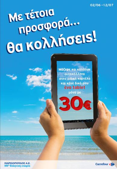 Η Μαρινόπουλος Α.Ε. υποδέχεται το καλοκαίρι 2014 με μια ακόμα μοναδική ενέργεια για όλους τους καταναλωτές που επισκέπτονται καθημερινά τα καταστήματά της. Συνεπής στη δέσμευσή της να εκπλήσσει ευχάριστα τους πελάτες της με ασυναγώνιστες προσφορές προϊόντων, η εταιρεία αυτή τη φορά δίνει την ευκαιρία σε όσους μαζέψουν και κολλήσουν αυτοκόλλητα σε ειδική καρτέλα, να αποκτήσουν ένα tablet F&U, μόνο με 30 ευρώ!