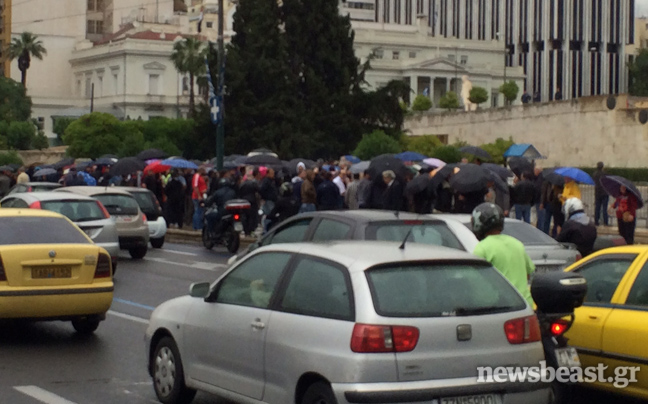 Αυτή τη στιγμή, περίπου 30 άτομα έχουν συγκεντρωθεί στο πεζοδρόμιο της λεωφόρου Αμαλίας όμως όσο περνά η ώρα, όπως λένε, θα έρχονται και άλλοι διαμαρτυρόμενοι.
