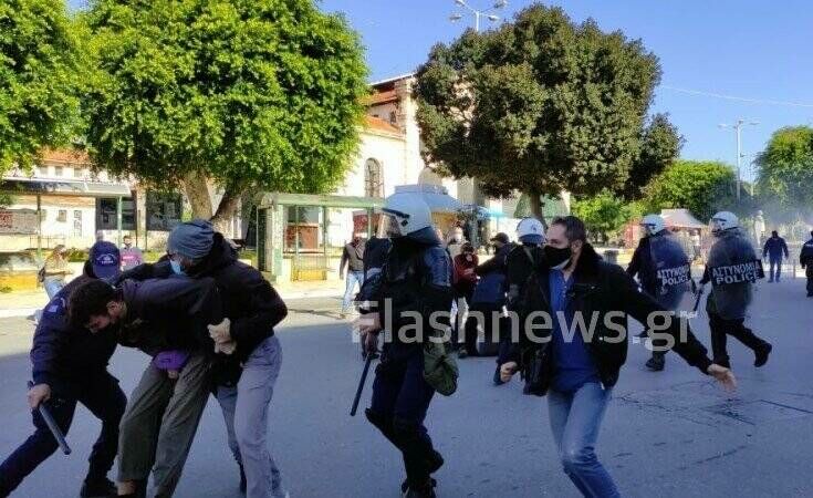 Μεγάλη ένταση και προσαγωγές στην κινητοποίηση στα Χανιά στο πλαίσιο της επετείου για τη δολοφονία του Αλέξη Γρηγορόπουλου.