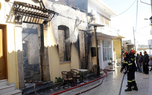 Τίποτα όρθιο δεν άφησε η πυρκαγιά που ξέσπασε σήμερα τα ξημερώματα σε διώροφη καφετέρια στον Κρουσώνα Ηρακλείου.