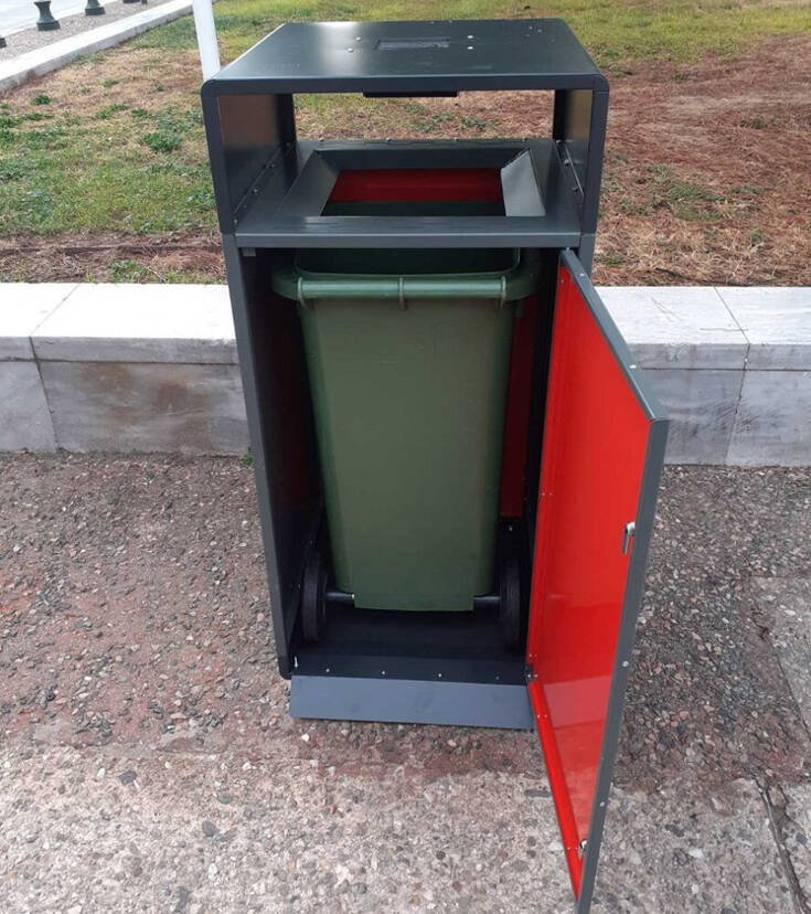Οι καινούριοι κάδοι συλλογής μικροαπορριμμάτων που τοποθετήθηκαν στην παλιά παραλία διαθέτουν επίστρωση αντιγκράφιτι και ειδική θήκη για τα αποτσίγαρα.