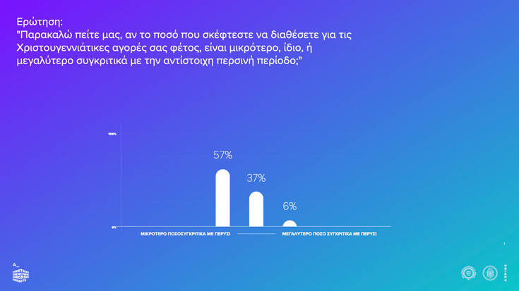 Η έρευνα αποκαλύπτει σημαντικά στοιχεία που σκιαγραφούν την κίνηση της αγοράς αυτές τις γιορτές, σύμφωνα με τα οποία η αγοραστική δύναμη του κόσμου προβλέπεται μειωμένη, με το 57% των καταναλωτών να δηλώνει πως θα διαθέσει μικρότερο budget για τις Χριστουγεννιάτικες αγορές του συγκριτικά με πέρυσι. Παράλληλα, οι καταναλωτές εκφράζουν ανησυχία για το άνοιγμα των καταστημάτων, αν και υπάρχει επιθυμία να τα επισκεφθούν. Την ίδια ώρα, οι διαδικτυακές αγορές έχουν αυξηθεί κατά 72% σε σύγκριση με το πρώτο lockdown, καθώς ένας στους δύο καταναλωτές δηλώνει πως θα προτιμήσει κυρίως αυτόν τον τρόπο για τις αγορές του.