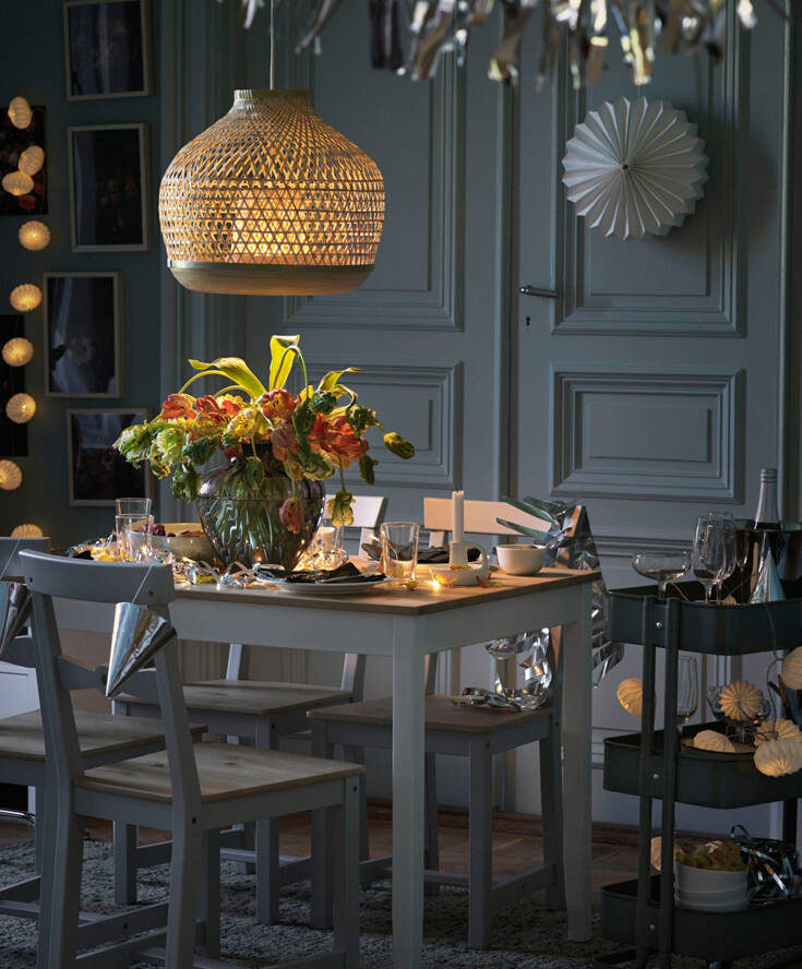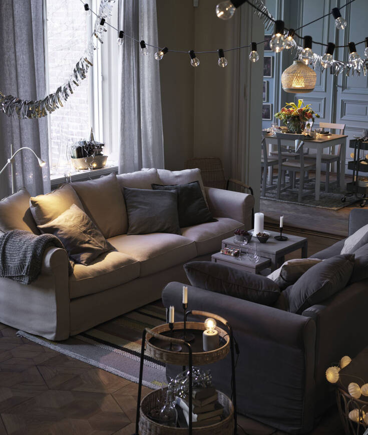 Οι χώροι της κουζίνας και της τραπεζαρίας έχουν την τιμητική τους στις γιορτές, αφού φιλοξενούν πλήθος λαχταριστών λιχουδιών που ομορφαίνουν την ατμόσφαιρα με το άρωμά τους, και φέρνουν ακόμα πιο κοντά την οικογένεια. Προτιμήστε επεκτεινόμενες λύσεις, όπως το τραπέζι NORDVIKEN που κρύβει δύο επεκτάσεις κάτω από την επιφάνειά του ή το στρογγυλό INGATORP, που μεγαλώνουν και μικραίνουν ανάλογα με τις ανάγκες σας.