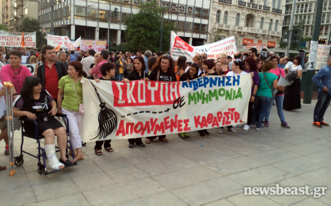 Στην πλατεία Συντάγματος κατέληξε η πορεία της ΑΔΕΔΥ με τη συμμετοχή των απολυμένων καθαριστριών του υπ. Οικονομικών.