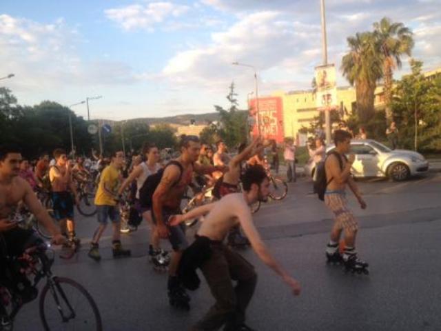 Ποδηλάτες κάθε ηλικίας, ακόμα και μικρά παιδιά, συγκεντρώθηκαν στο πάρκο της ΧΑΝΘ και λίγο μετά τις 8 το βράδυ τα ποδήλατα ξεχύθηκαν σε κεντρικούς δρόμους της πόλης, προκαλώντας πανδαιμόνιο από τις σφυρίχτρες των ποδηλατών. Κατέληξαν στο σημείο εκκίνησης, όπου η εκδήλωση ολοκληρώθηκε το βράδυ, με μουσική, χορό, καύση πυροτεχνημάτων, δρώμενα και προβολές.