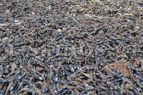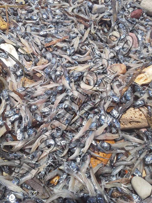 Πιθανότατα τα ξημερώματα της Παρασκευής κάποιο/α Γρι-Γρι διαπίστωσαν ότι είχαν πιάσει αυτά τα μικρά ψάρια και για να μην αντιμετωπίσουν πρόβλημα τα πέταξαν στη θάλασσα.