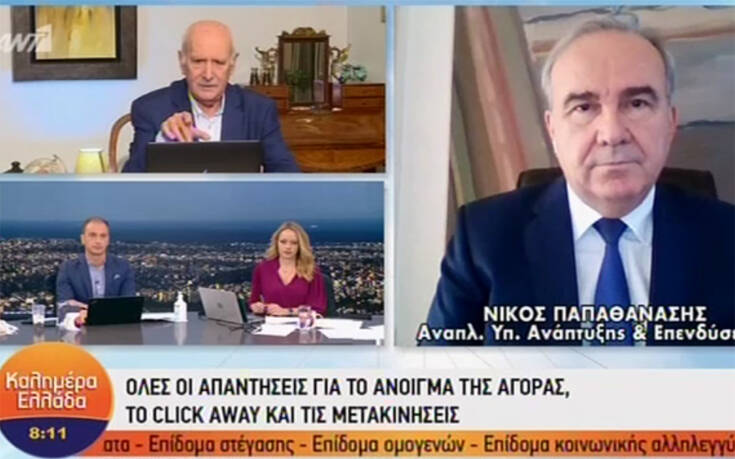 Ο αναπληρωτής υπουργός Ανάπτυξης και Επενδύσεων, Νίκος Παπαθανάσης έδωσε απαντήσεις σε όλα τα ερωτήματα που αφορούν το click away, τις μετακινήσεις εν μέσω γιορτών και το λιανεμπόριο.
