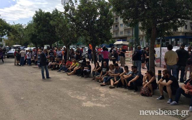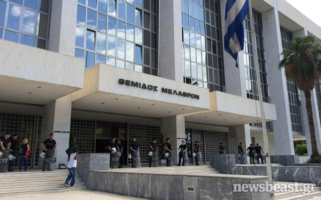 Οι απολυμένες καθαρίστριες έφυγαν από το υπουργείο Οικονομικών, το οποίο είχαν αποκλείσει από νωρίς το πρωί, και περιμένουν να παρακολουθήσουν την εκδίκαση αναστολής που κατέθεσε το υπουργείο Οικονομικών κατά της πρωτόδικης απόφασης, οποία αρχίζει στις 12.30.
