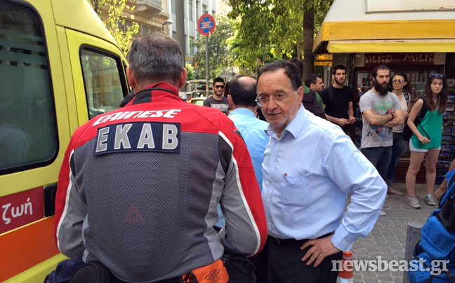 Έξω από το υπουργείο Οικονομικών για να συμπαρασταθεί στον αγώνα των καθαριστριών βρέθηκε και ο βουλευτής του ΣΥΡΙΖΑ, Παναγιώτης Λαφαζάνης, ο οποίος διαμαρτυρήθηκε έντονα επειδή οι αστυνομικές δυνάμεις δεν επέτρεψαν στο ασθενοφόρο να μπει στην Νίκης και να παραλάβει την τραυματία.