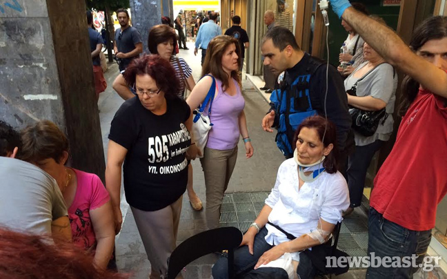 Μια γυναίκα τραυματίστηκε στο γόνατο κατά τη διάρκεια των επεισοδίων με δυνάμεις των ΜΑΤ στην οδό Νίκης έξω από το υπουργείο Οικονομικών. Η τραυματίας αποχώρησε από το σημείο με ασθενοφόρο του ΕΚΑΒ, το οποίο όμως σύμφωνα με καταγγελίες, δυσκολεύτηκε να φτάσει στο σημείο εξαιτίας της ισχυρής αστυνομικής παρουσίας.