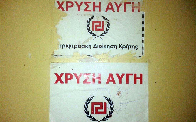 Κάποιου είδους μήνυμα φαίνεται ότι ήθελαν να στείλουν κάποιοι στα τοπικά μέλη της Χρυσής Αυγής στην Κρήτη.