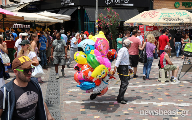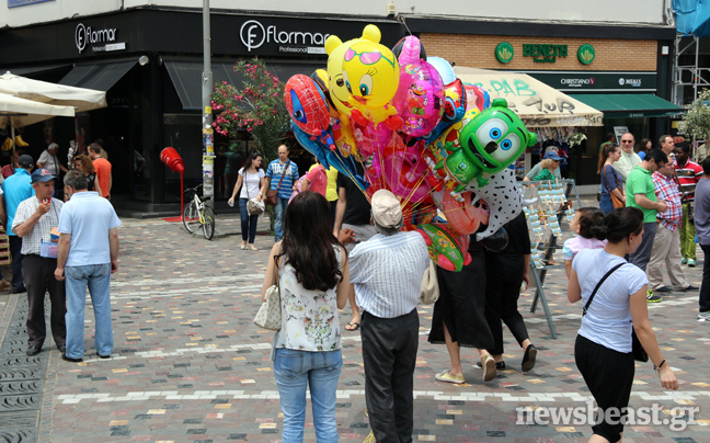 Και μιας και η βόλτα στο κέντρο της πόλης αποτελούσε ανέκαθεν οικογενειακή συνήθεια, το σκηνικό συμπληρώνεται από πωλητές πολύχρωμων μπαλονιών με ήλιο, σε σχέδια αγαπημένων παιδικών ηρώων για τους μικρούς φίλους.