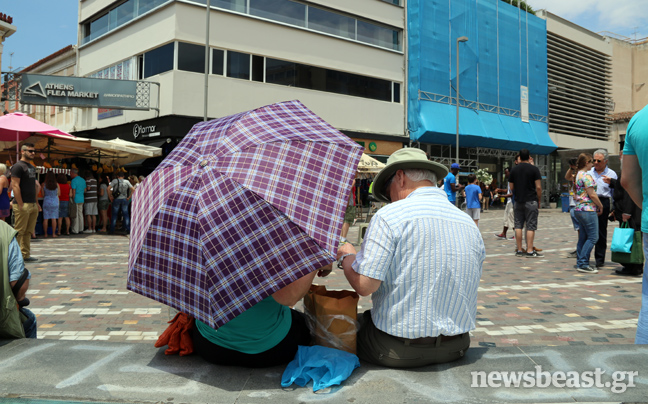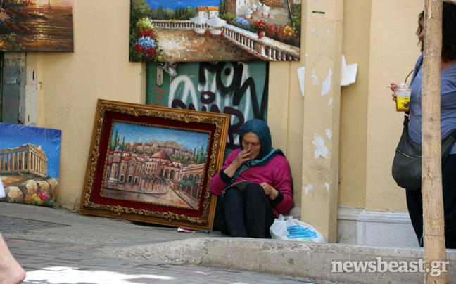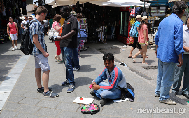 Παράλληλα όμως με αυτό το πλήθος που βιοπορίζεται πουλώντας τα προϊόντα του, στις γωνίες στέκει κι ένα άλλο του οποίου η ελπίδα και η όρεξη για ζωή φαίνεται να έχει στερέψει. Άνθρωποι καταπονημένοι επαιτούν για να εξασφαλίσουν την τροφή της ημέρας. Άλλοτε χρήστες ναρκωτικών, άλλοτε άστεγοι που η οικονομική κρίση τους έβγαλε στο πεζοδρόμιο δεν συμμερίζονται τη χαρά των υπολοίπων. Απλώς υπάρχουν για να θυμίζουν στον επισκέπτη πως η ζωή δεν παρουσιάζει το ίδιο πρόσωπο σε όλους.