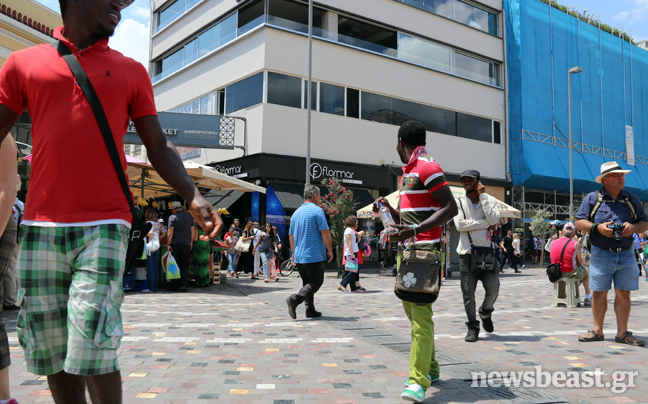 Κύβοι του Ρούμπικ, κολλώδη μπαλάκια, τυχερά πλεχτά βραχιολάκια «Hakuna matata» είναι μερικά από τα συνηθισμένα αντικείμενα που διατίθενται προς πώληση στην πλατεία. Μικροπωλητές διαφόρων αντικειμένων προσπαθούν να τραβήξουν την προσοχή της δυνητικής τους πελατείας είτε με επίδειξη του προϊόντος, είτε προσεγγίζοντας φιλικά τον κάθε περαστικό.