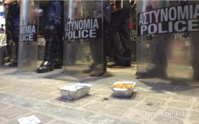 Με… σκυλοτροφή, την οποία άφησαν μπροστά στα ΜΑΤ, απάντησαν οι διαδηλωτές στα επεισοδία που σημειώθηκαν νωρίτερα σήμερα, αλλά και τις προηγούμενες μέρες με τις αστυνομικές δυνάμεις στην οδό Νίκης έξω από το υπουργείο Οικονομικών.