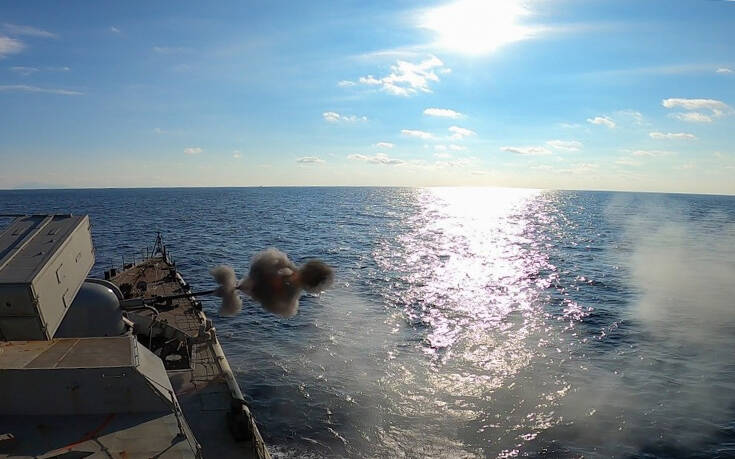 Τα γυμνάσια πυρών παρακολούθησε ο Αρχηγός ΓΕΝ Αντιναύαρχος Στυλιανός Πετράκης ΠΝ, επί της Φ/Γ «ΛΗΜΝΟΣ», όπου διαπίστωσε την υψηλή επιχειρησιακή ετοιμότητα και το ακμαίο ηθικό των πληρωμάτων των μονάδων του Στόλου.