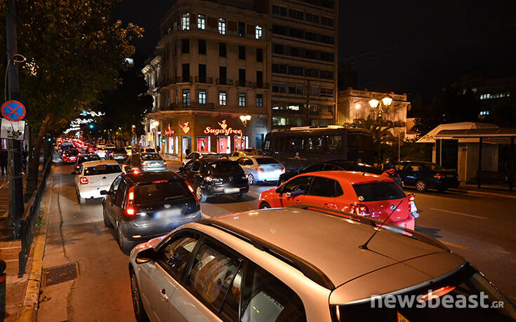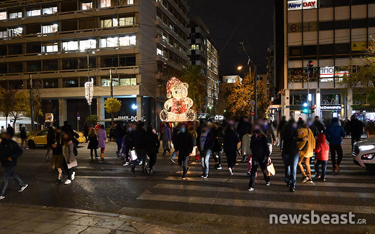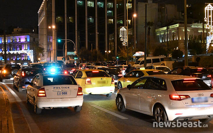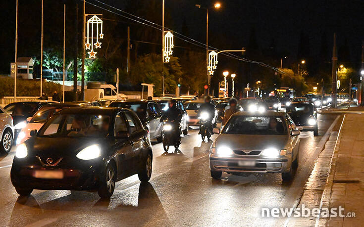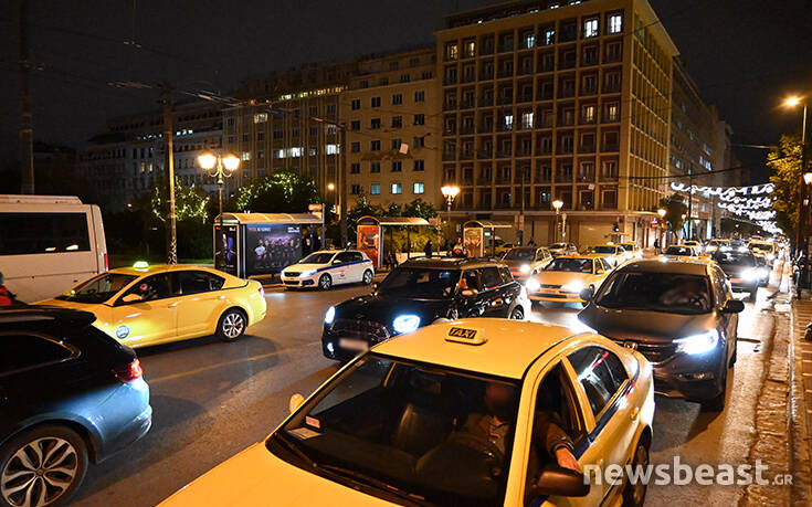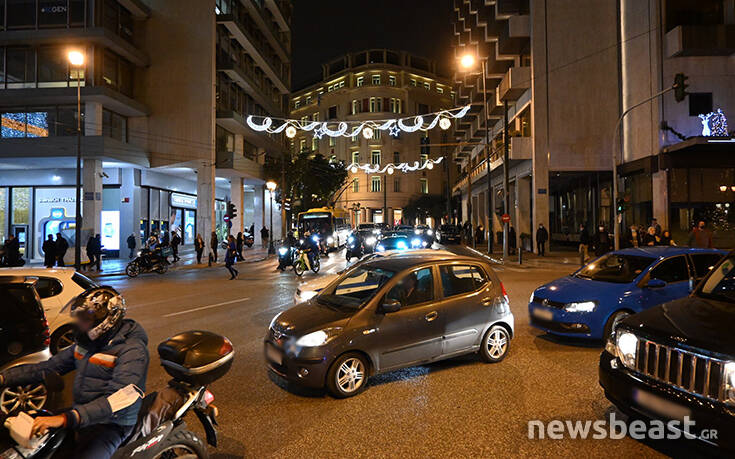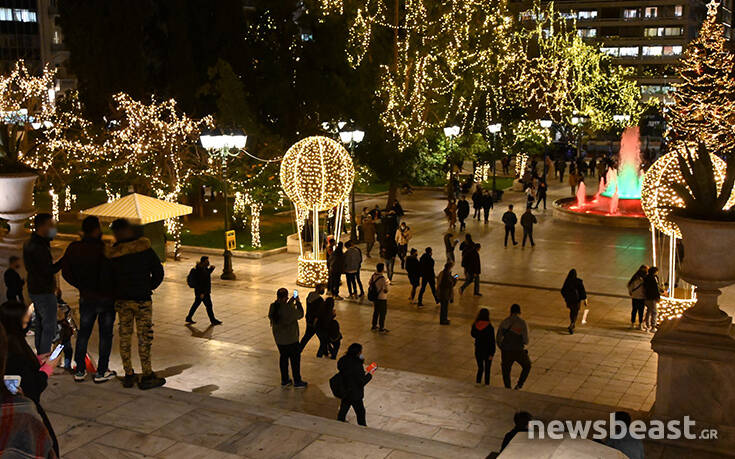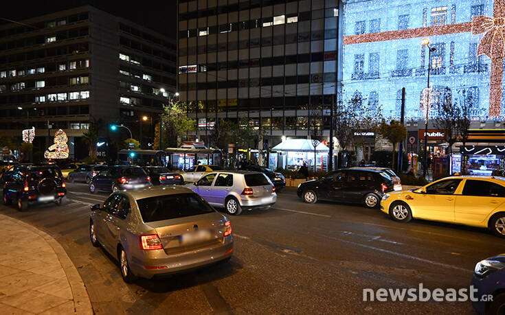 Εικόνες από γιορτινές ημέρες προηγούμενων ετών, όταν δεν υπήρχε η πανδημία του κορονοϊού να ταλαιπωρεί τον κόσμο, είναι αυτές που έρχονται από την πλατεία Συντάγματος και τους γύρω δρόμους. Μάλιστα, υπάρχει αρκετή κίνηση από αυτοκίνητα.