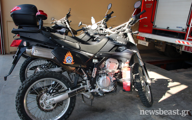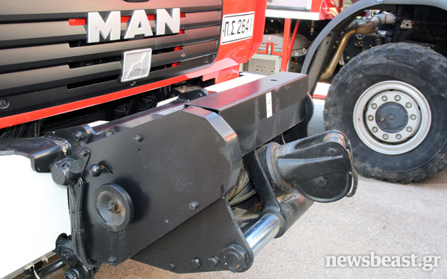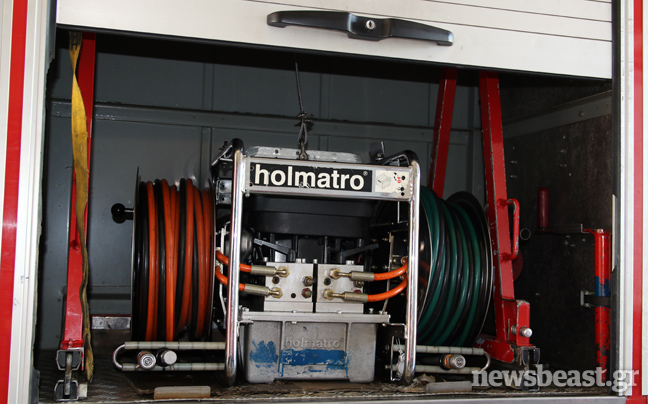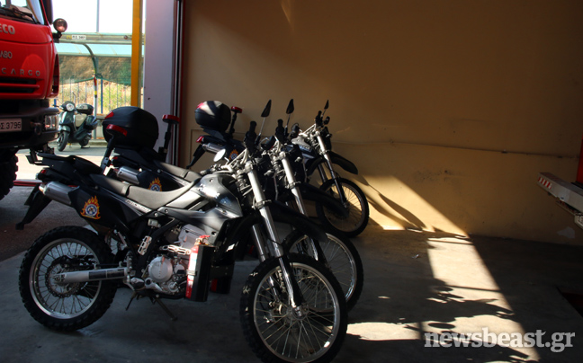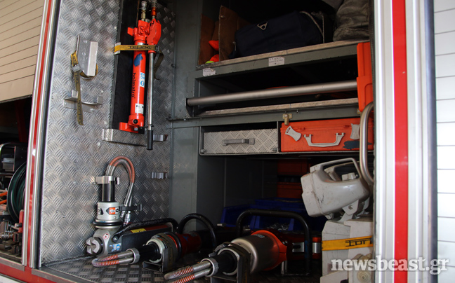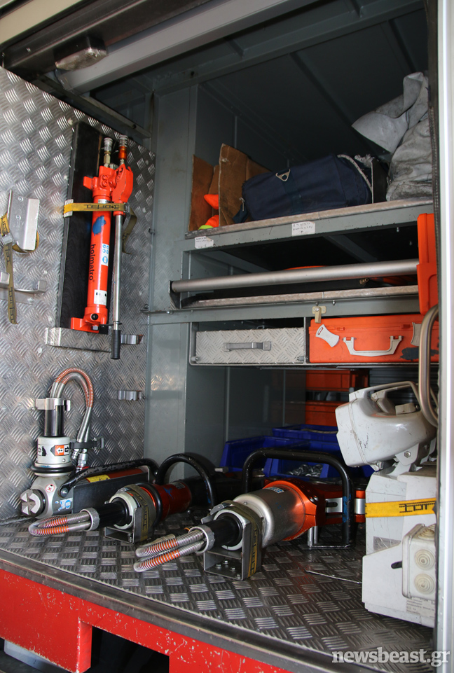 Τα πυροσβεστικά οχήματα που παρατηρεί κανείς στο χώρο στάθμευσης, διαφέρουν αρκετά μεταξύ τους ως προς τη χωρητικότητα αλλά και τη χρήση τους. «Σε κάθε αυτοκίνητο υπάρχουν πολλές σωλήνες διαφορετικής διατομής. Ανάλογα με την περίσταση και τον όγκο νερού που θες να χρησιμοποιήσεις βάζεις και την ανάλογη σωλήνα και τον ανάλογο αυλό. Υπάρχουν περιπτώσεις που θες να κάνεις οικονομία νερού, όταν δεν έχεις μεγάλα αποθέματα και πρέπει να μην τα εξαντλήσεις μέχρι να έρθει το όχημα ανεφοδιασμού. Σε αυτές χρησιμοποιείς σωλήνες μικρής διατομής. Εκτός από τα πυροσβεστικά, υπάρχουν και τα διασωστικά. Εξοπλισμένα με υπερσύγχρονα εργαλεία, αντλίες, διαστολείς, ηλεκτρονικούς κόφτες, γρύλους, μαξιλάρια απεγκλωβισμού. Οι μηχανές της ομάδας Ήφαιστος που υπάρχουν στο χώρο, χρησιμοποιούνται κυρίως για περιπολίες σε περιοχές μεγάλης επικινδυνότητας. «Για το φόβο των Ιουδαίων» όπως μας ενημερώνουν οι πυροσβέστες.
