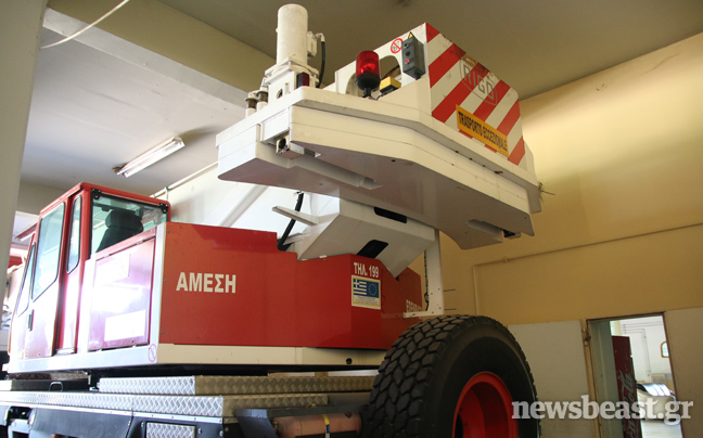 Σε περιπτώσεις που η πυρκαγιά διαρκεί ώρες ή και μέρες χρησιμοποιούνται τα οχήματα μεταφοράς προσωπικού και ο λεγόμενος «δότης», χωρητικότητας 10 τόνων. Για να φτάσουν οι πυροσβέστες του πάνω ορόφου άμεσα στο χώρο στάθμευσης ώστε να επιβιβαστούν στα οχήματα, δεν υπάρχει στύλος όπως θα περίμενε κανείς, υπάρχει όμως τσουλήθρα. «Κυρίως κατά τη νυχτερινή βάρδια, εάν χτυπήσει το κουδούνι το προσωπικό κατεβαίνει από την τσουλήθρα. Είναι γερή και φαρδιά για να χωρούν όλοι» αναφέρει ο Βασίλης χαριτολογώντας.