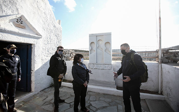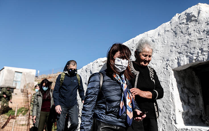 Η Πρόεδρος της Δημοκρατίας, Κατερίνα Σακελλαροπούλου, μετέβη σήμερα στην Κίναρο, όπου συναντήθηκε με τη μοναδική κάτοικο του νησιού Ειρήνη Κατσοτούρχη, συνοδευόμενη από τον υφυπουργό Εθνικής Άμυνας, Αλκιβιάδη Στεφανή.