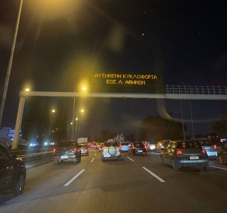 Οι πινακίδες ενημέρωσης της κυκλοφορίας ενημέρωναν τους οδηγούς πως υπάρχει αυξημένη κίνηση και όπως διαπιστώσαμε στη διαδρομή μας, η κίνηση δεν προερχόταν από κάποιο ατύχημα ή από ακινητοποιημένο όχημα, αλλά καθαρά από τα πολλά αυτοκίνητα.