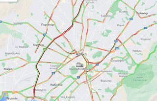 Όπως θα δείτε και στον παρακάτω χάρτη οι κεντρικοί δρόμοι της πρωτεύουσας όπως η Σταδίου, η Βασιλίσσης Σοφίας, η Λεωφόρος Αλεξάνδρας, η Κηφισίας κ.α. βρίσκονται στο «κόκκινο».