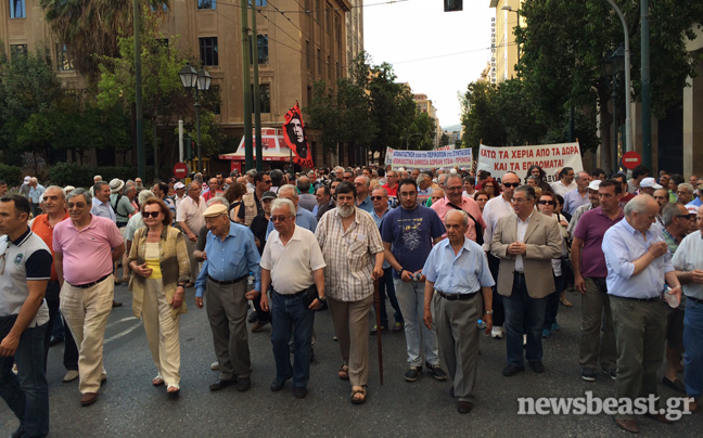 Οι συνταξιούχοι κατευθύνονται προς την πλατεία Συντάγματος.