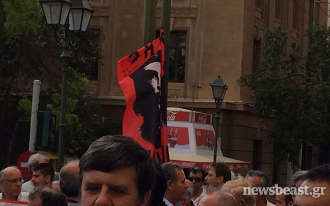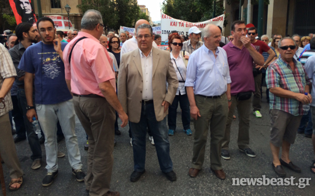 Στην κεφαλή της πορείας βρίσκεται ο γενικός γραμματέας του ΚΚΕ, Δημήτρης Κουτσούμπας, ενώ το «παρών» δίνει και η Αλέκα Παπαρήγα.