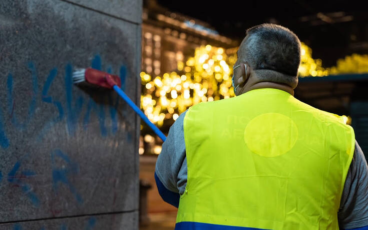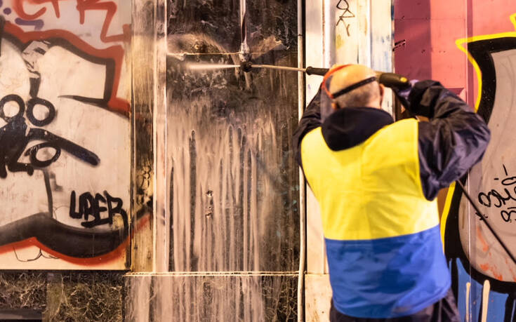 Με οργανωμένο σχέδιο και σχολαστικότητα οι εργαζόμενοι καθάρισαν μέσα σε περίπου μια εβδομάδα επιφάνειες συνολικού εμβαδού σχεδόν 1.700 τετραγωνικών μέτρων, σε μια απόσταση 1,3 χιλιομέτρου από το Σύνταγμα μέχρι την οδό Αγίων Ασωμάτων.