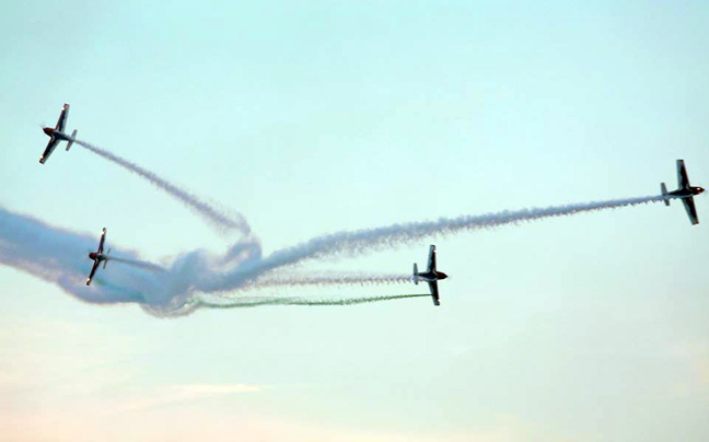 Εντυπωσιακοί ελιγμοί, μοναδικές βυθίσεις και πολύχρωμα καπνογόνα στον ουρανό της Καβάλας από τους πιλότους και τα πληρώματα των αεροπλάνων που κόβουν την ανάσα, ανέβασαν στα ύψη το ενδιαφέρον όλων όσοι παρακολούθησαν το κύριο πρόγραμμα της 4ης διεθνούς διοργάνωσης Airsea Show στην Καβάλα, που άρχισε την Παρασκευή και ολοκληρώθηκε χθες το μεσημέρι.