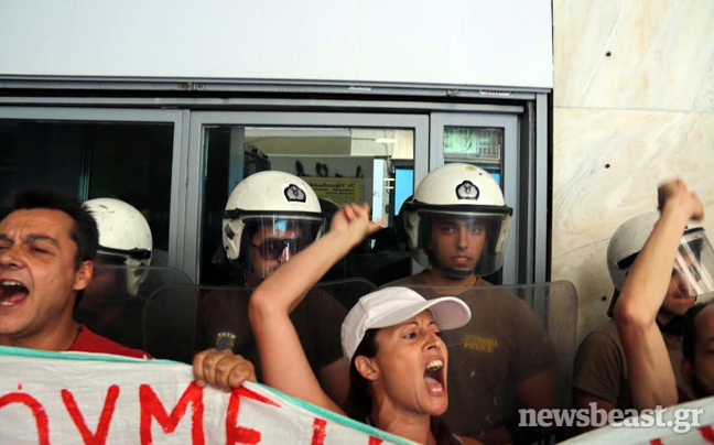 Οι διαμαρτυρόμενοι ζητούν συνάντηση με τον Βαγγέλη Βενιζέλο και λένε ότι δεν θα φύγουν από εκεί αν δεν συναντηθούν με τον αντιπρόεδρο της κυβέρνησης.