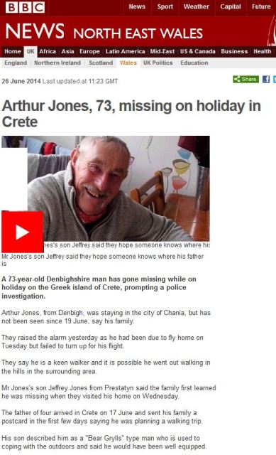 Ουσιαστικά ο 73χρονος έφτασε στα Χανιά στις 17 Ιουνίου και έφυγε απο τα ενοικιαζόμενα δωμάτια στις 19 Ιουνίου χωρίς να δώσει περαιτέρω σημεία ζωής, ενώ στους συγγενείς του στην Αγγλία είχε στείλει μια κάρτα στην οποία ανέφερε πως σχεδίαζε μια πεζοπορία.