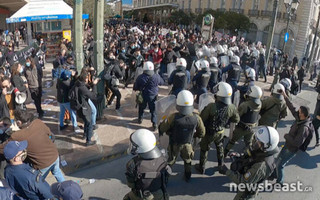 Ένταση επικράτησε πριν λίγη ώρα μεταξύ των αστυνομικών δυνάμεων και των διαδηλωτών, καθώς οι διαδηλωτές προσπάθησαν να περάσουν το φράγμα των αστυνομικών δυνάμεων, ώστε να πραγματοποιήσουν πορεία.