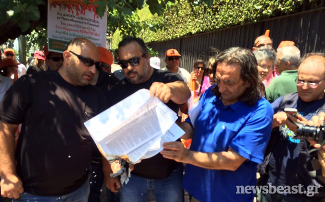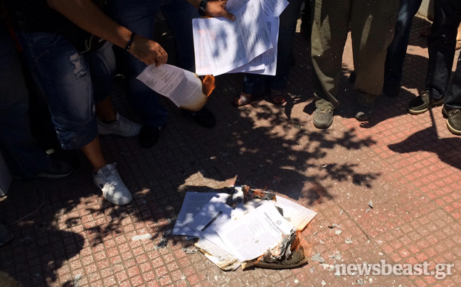 Οι εργαζόμενοι έκαψαν πάντως και φωτοτυπίες που στάλθηκαν σε διάφορους νομούς για το μέτρο της αξιολόγησης.