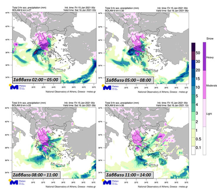 Οι χιονοπτώσεις θα ξεκινήσουν από το βράδυ της Παρασκευής (15/01) στα ορεινά της κεντρικής και βόρειας ηπειρωτικής χώρας και έως το πρωί του Σαββάτου (16/01) θα επεκταθούν σε όλα τα κεντρικά και βόρεια ηπειρωτικά, στη Βορειοανατολική Πελοπόννησο, καθώς και στα ορεινά της υπόλοιπης χώρας.