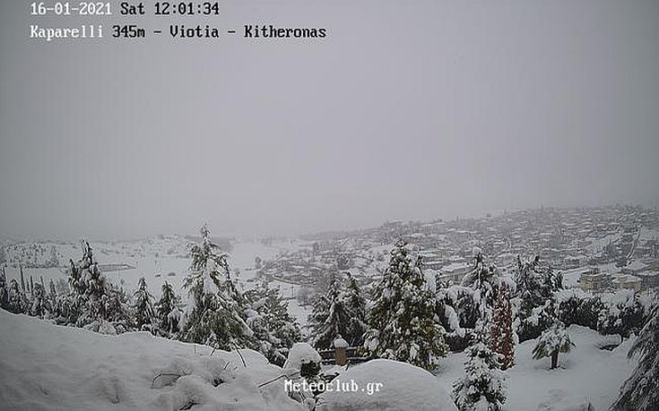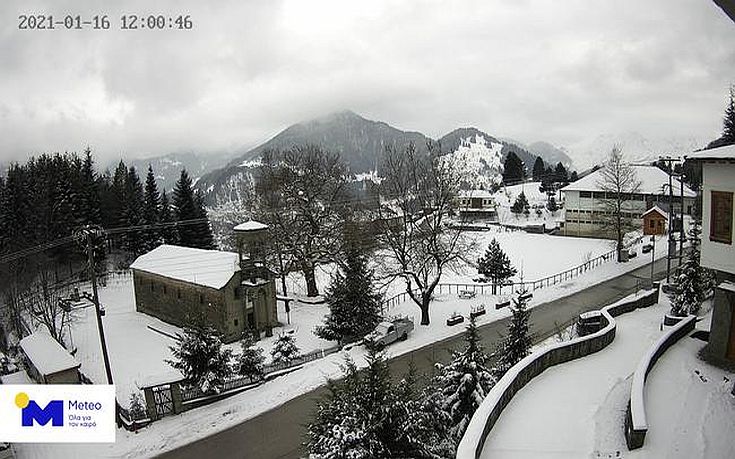 Εικόνες από τα χιονισμένα Μέτσοβο και Καπαρέλλι Θηβών.