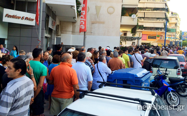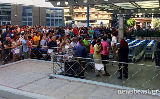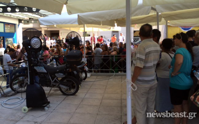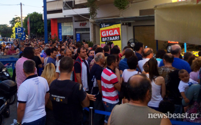 Αυτή τη στιγμή μάλιστα οι υπεύθυνοι του καταστήματος έχουν βάλει ανεμιστήρες και ομπρέλες για τον κόσμο που περιμένει.