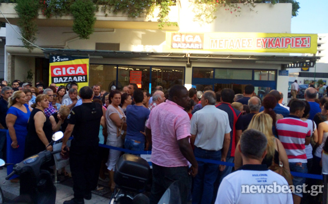 Μπαζάρ προϊόντων σε τιμές κάτω του κόστους στα Πατήσια έχει προκαλέσει ουρά τουλάχιστον 600 ατόμων.