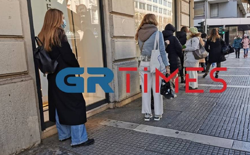 Όπως μεταδίδει το GRTimes.gr πάρα τις χαμηλές θερμοκρασίες οι πελάτες περίμεναν καρτερικά για να μπουν και να αγοράσουν προϊόντα, φορώντας μάσκα και προσπαθώντας να τηρήσουν αποστάσεις.