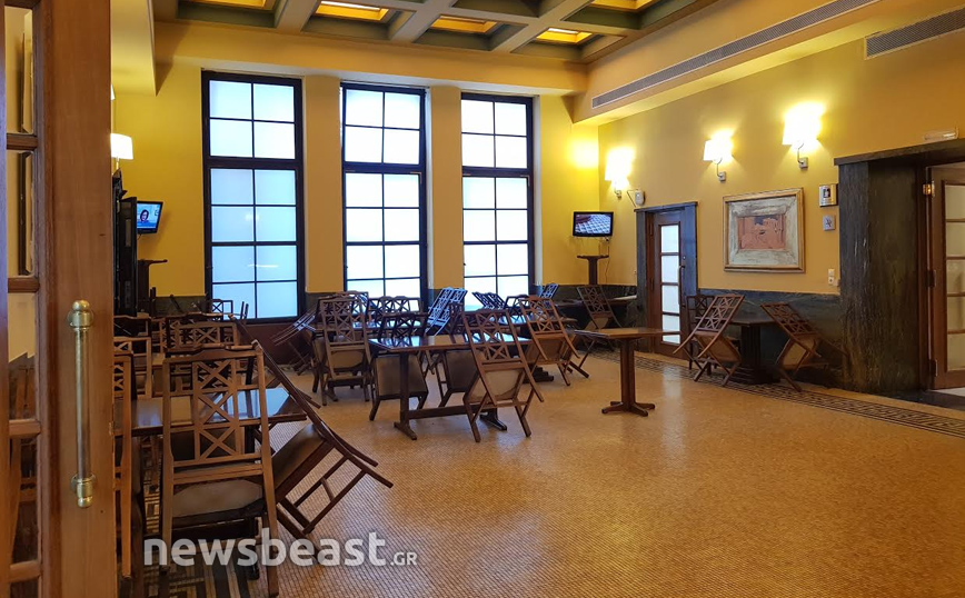 Υπό άλλες συνθήκες μία τέτοια μέρα σαν τη σημερινή, το καφενείο θα ήταν γεμάτο από κόσμο με τα γνωστά “πηγαδάκια” από βουλευτές όλων των κομμάτων.