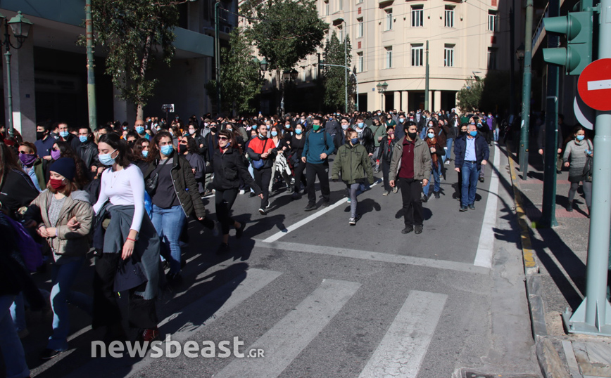 Με κεντρικό σύνθημα «Ακούστε το καλά τι λένε οι φοιτητές, έξω η ασφάλεια από τις σχολές» οι φοιτητές συγκεντρώθηκαν στα Προπύλαια κι αυτή την ώρα πραγματοποιούν πορεία προς τη Βουλή, ζητώντας να μην κατατεθεί το νομοσχέδιο.