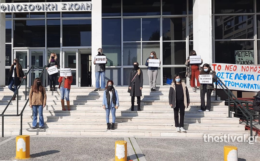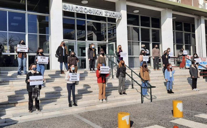 Συγκέντρωση διαμαρτυρίας πραγματοποίησαν πριν από λίγη ώρα νεαρές φοιτήτριες διαφόρων συλλόγων, στέλνοντας ένα ηχηρό μήνυμα ενάντια στη βία κατά των γυναικών, στον αύλειο χώρο της φιλοσοφικής σχολής του Αριστοτελείου Πανεπιστημίου Θεσσαλονίκης.