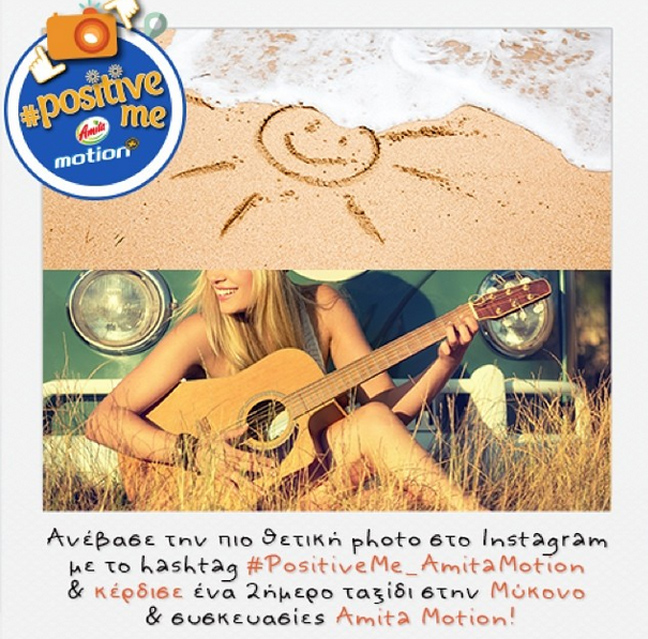 Bγάλε φωτογραφία αυτό που εκφράζει θετική ενέργεια για εσένα & ανέβασε* την στο profile σου στο Instagram μαζί με το hashtag #PositiveMe_AmitaMotion και μπορεί να είσαι εσύ ο μεγάλος τυχερός.