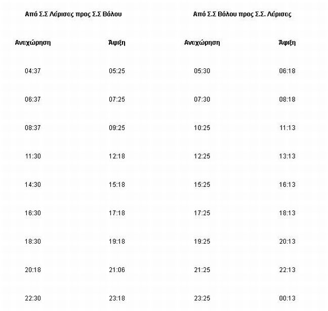 Οι επιβάτες που ταξιδεύουν από τη Λάρισα με προορισμό τον Βόλο και αντίστροφα θα εξυπηρετούνται με λεωφορεία.