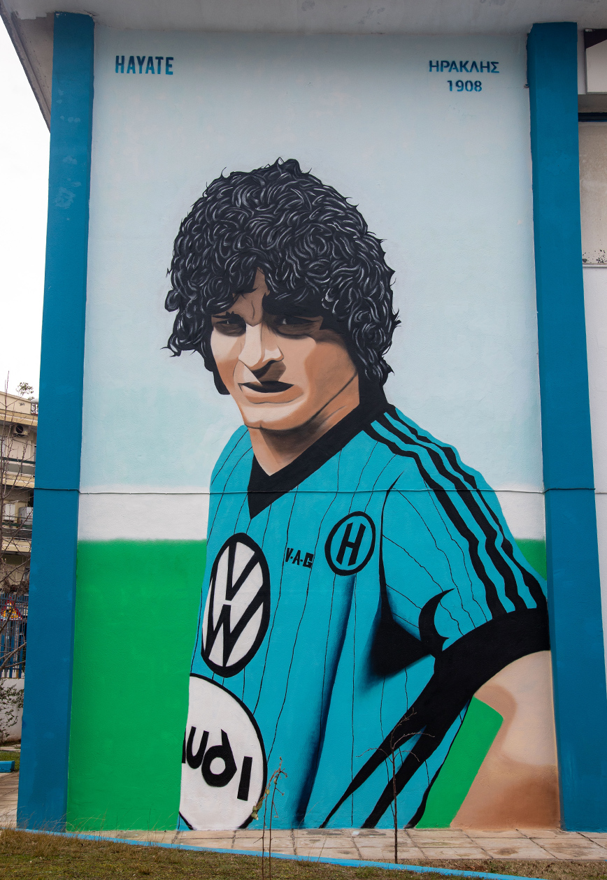 Ο καλλιτέχνης, Ηλίας Στύλος, με το ψευδώνυμο Hayate, μόλις ολοκλήρωσε το γκράφιτι του θρυλικού «Βάσια», του μεσοεπιθετικού που λάτρεψαν όσο κανέναν άλλον οι οπαδοί του Ηρακλή, που σέβονται για το ήθος και τα αγωνιστικά του τερτίπια στο χορτάρι καθώς και οι φίλαθλοι όλων των υπόλοιπων ομάδων. Πλέον, όσοι περνούν πεζή ή με τα αυτοκίνητα τους από την οδό Αγίου Δημητρίου θα βλέπουν στον τοίχο του Γ.Σ. Ηρακλής στο Κατσάνειο το πορτρέτο του Βασίλη Χατζηπαναγή.