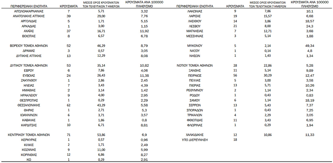 - 7 κρούσματα στην Π.Ε. Αιτωλοακαρνανίας