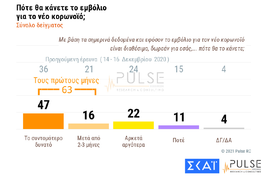 Πότε θα κάνουν το εμβόλιο; Σε ποσοστό 63% απάντησαν «Το συντομότερο δυνατό» ή «Μετά από 2-3 μήνες».