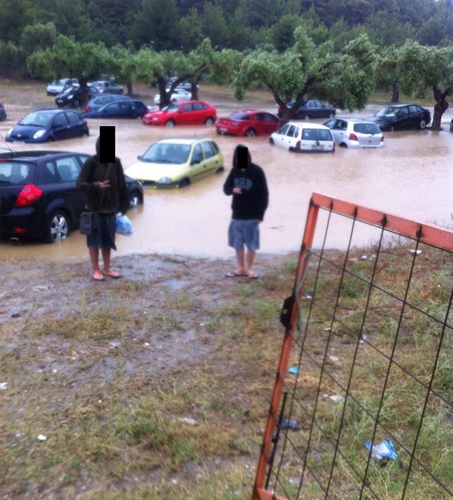 Πρόκειται για το κάμπινγκ του Αριστοτελείου Πανεπιστημίου Θεσσαλονίκης στο Ποσείδι Χαλκιδικής. Εξαιτίας της έντονης και συνεχούς βροχόπτωσης ο χώρος στάθμευσης πλημμύρισε και τα αυτοκίνητα έφτασαν να «κολυμπούν», όπως αναφέρει το seleo.gr.